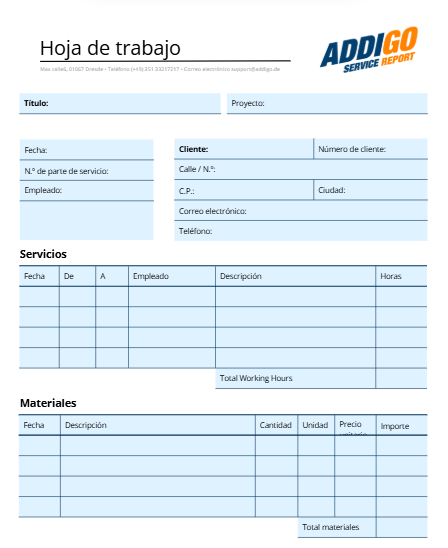 El parte de trabajo, también conocido como hoja de informe o informe de ejecución, es un documento estructurado utilizado para registrar las tareas realizadas en el sector artesanal, en la construcción o por otros proveedores de servicios. Sirve como registro oficial e incluye información sobre las actividades realizadas, los materiales utilizados y el tiempo empleado.