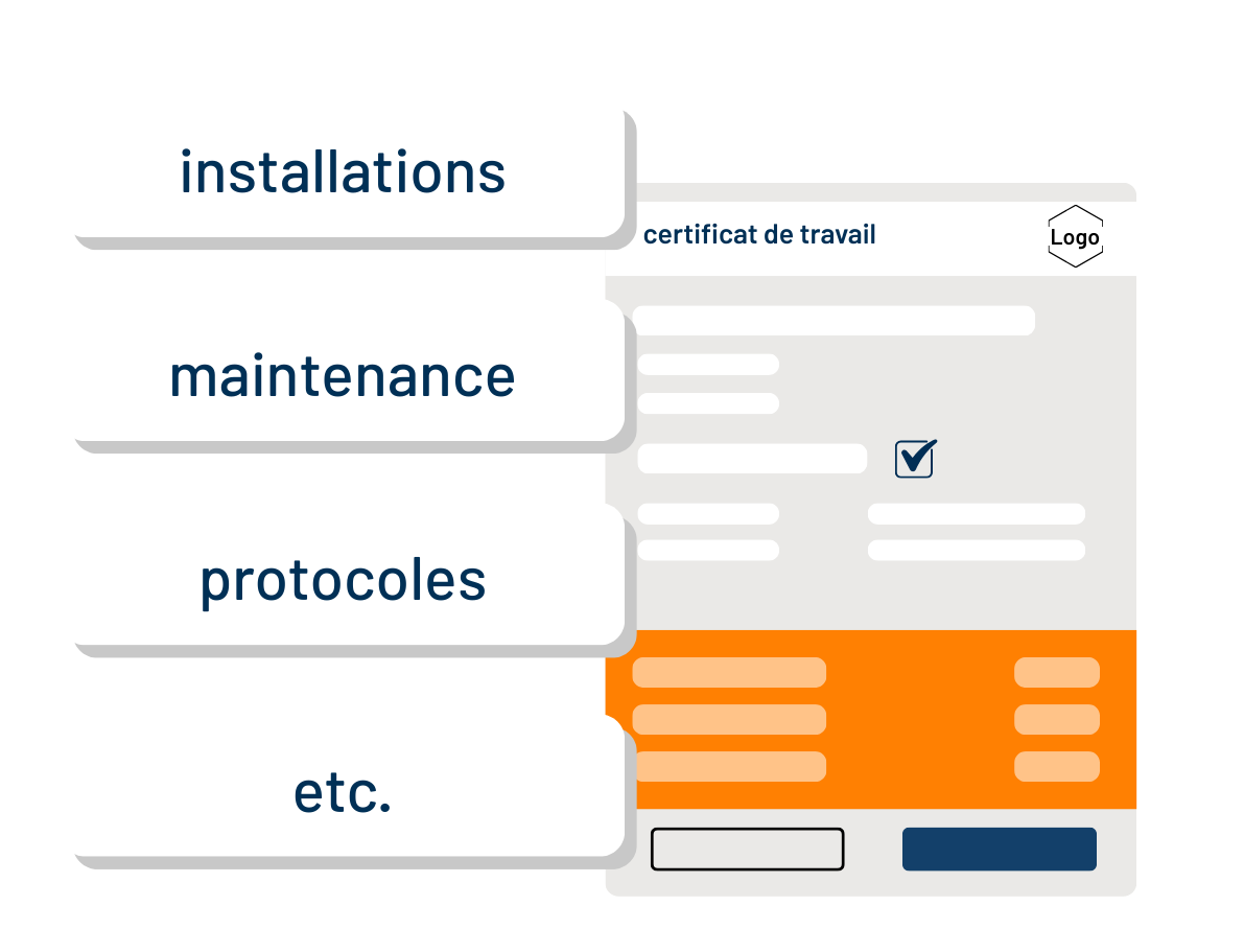 Chaque secteur a ses propres processus et exigences. Les formulaires standard sont rarement adaptés. Avec ADDIGO, vous pouvez facilement personnaliser des modèles tels que les protocoles de maintenance ou de réception, ou créer vos propres formulaires. Vous numérisez ainsi votre méthode de travail à l’identique, de manière flexible, adaptée à votre secteur et sans outils supplémentaires.