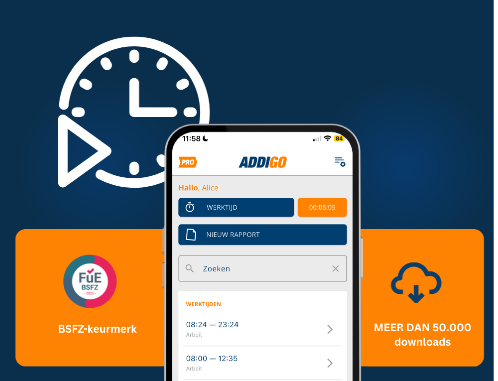 De wettelijke verplichting om werkuren te registreren stelt veel bedrijven voor nieuwe uitdagingen. Met de ADDIGO-app kunt u deze verplichting omzetten in een kans. Uw medewerkers registreren werkuren, pauzes en reistijden digitaal en onderweg – direct op locatie. Alle gegevens worden automatisch overgedragen naar de ADDIGO Cockpit. Zo houdt u alles bij – wettelijk conform, efficiënt en papierloos.